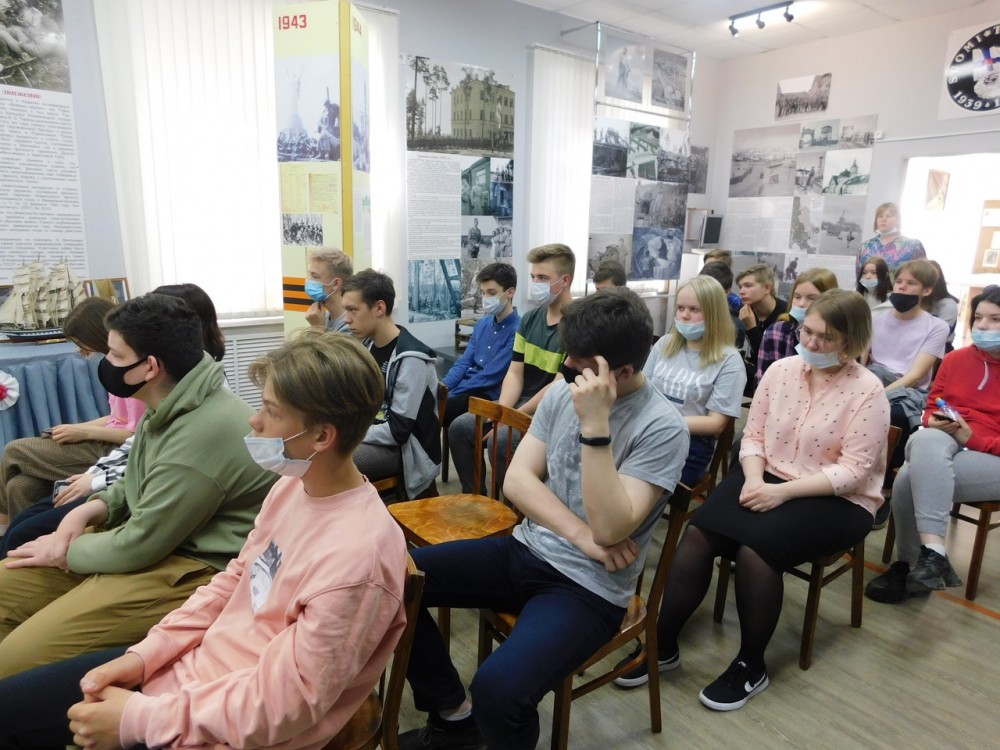 Девятиклассники Медвежьегорской школы №3 на мероприятии "Я дочь ветерана", которое провела Т.Т. Андрушкевич, специалист отдела социально-библиотечного обслуживания городской библиотеки. По завершении мероприятия школьники посмотрели фильм о реконструкции боя за Медвежьегорск, посетили выставку "И помнит мир спасённый..." народной художественной студии "Мальки".