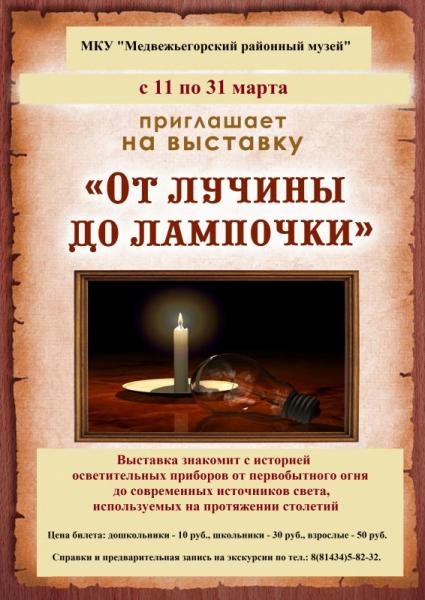 «Медвежьегорский районный музей» приглашает вас посетить выставку под названием «От лучины до лампочки».
